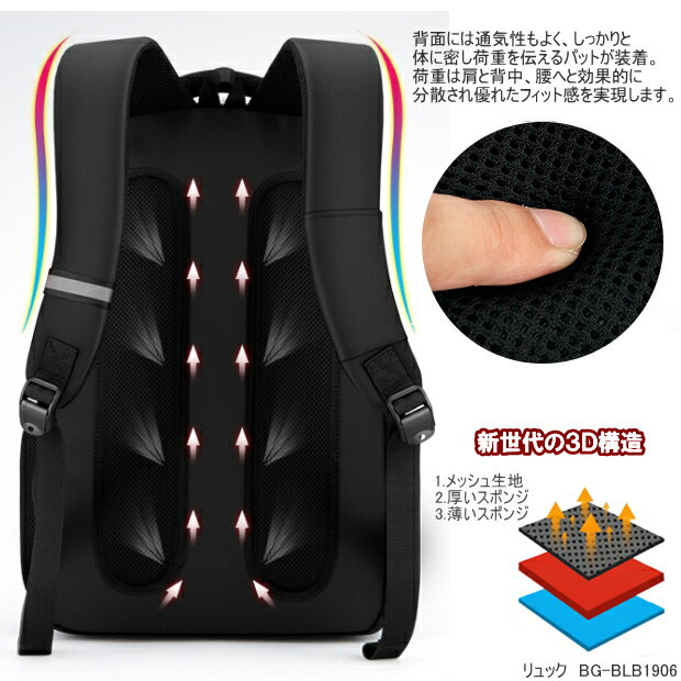 普段使いに最適の大容量のメンズリュック 通勤 通学 撥水加工を施した摩擦に強い素材で、防水&耐久性に優れたバックパック 内部は衝撃に強いクッション素材を使用、ノートPC(15.6インチまで)やiPadを収納可能。