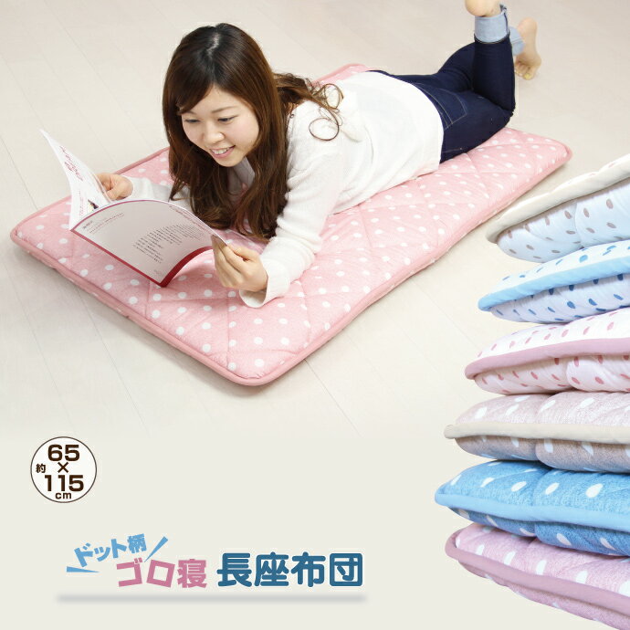 ごろ寝マット 日本製 65X115cm ドット柄 三層 長座布団 お昼寝マット クッション 国産 3層構造 固綿入り コンパクト 送料無料【ふとん屋さんが作った長座布団】