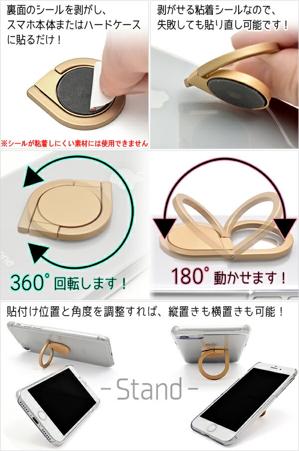 メール便送料無料刻印無料【オリジナル刻印スマホリング/しずく型】シールタイプ デコ 装飾 アレンジ オリジナル 個性 スマホケース カスタマイズ アクセント リングスタンド 動画視聴 ユニセックス 落下防止対策 安定感 ピンク ゴールド ブラック 薄型 軽量 イニシャル