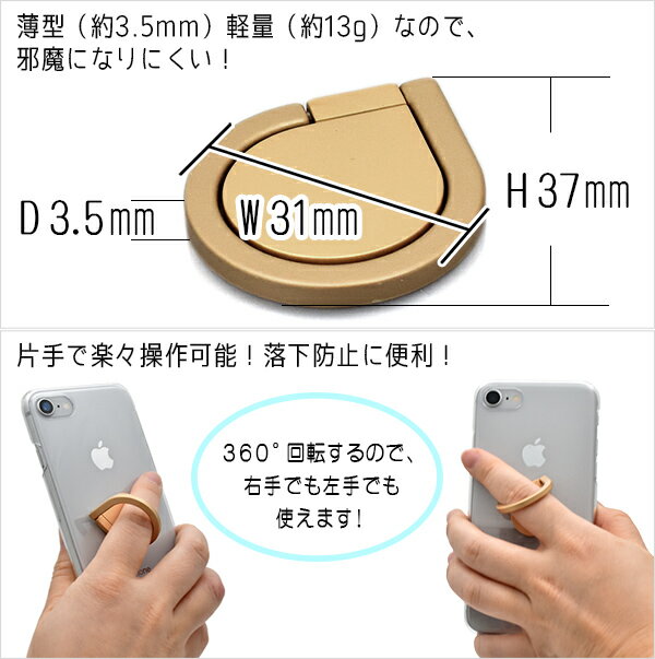 片手が塞がっているときでもリングホルダーがあれば文字うちだって可能です!3.5mmと薄型でシンプルな、しずく型スマホリング。