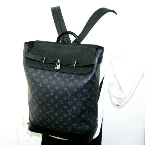 349559【新品同様】【LOUIS VUITTON】【ルイ・ヴィトン】スティーマー・バックパック モノグラム・エクリプス オーストリッチ ノワール N93492